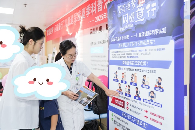 遗尿症,困扰着15.2%的5岁儿童,8.3%的8岁儿童!但许多家长仍误以为“长大就好”,为破除误解,助力孩子健康成长,2025年8月9日14:30,西南儿童康复医院在二楼大厅成功开展了主题为“繁星逐梦·闪耀童行”的遗尿症夏季科普活动。本次活动通过知识普及、趣味游戏等形式,为遗尿症儿童及家庭提供了专业指导与心理支持,彰显了医疗机构与社会企业的责任担当。